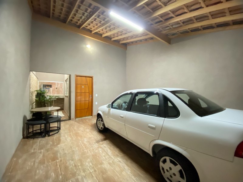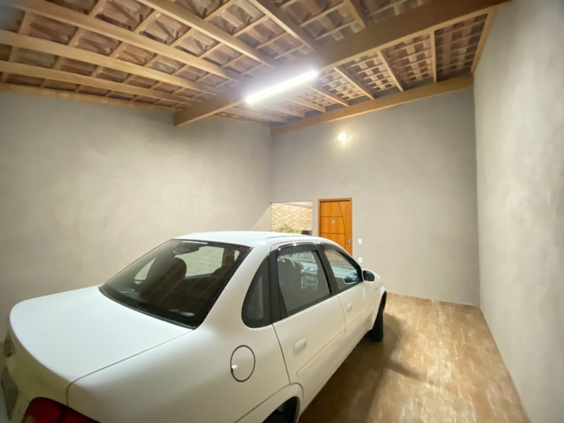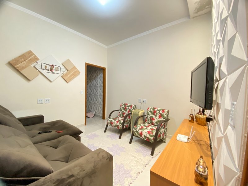 2 dormitórios, um banheiro, sala, cozinha ampla com armarios, garagem coberta para 2 carros, espaço para terceiro dormitório.