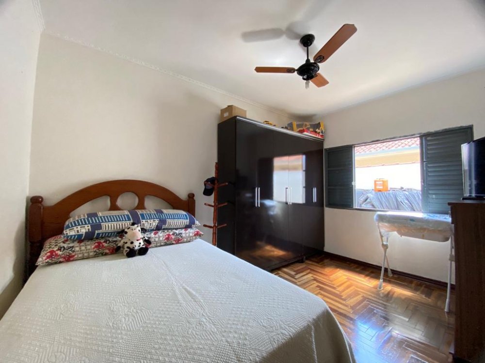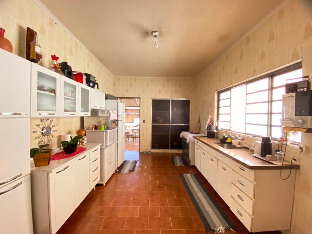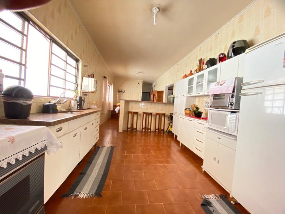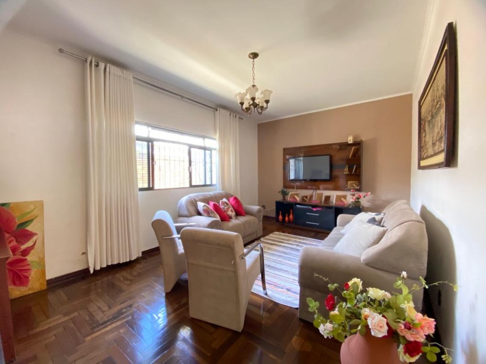 Contém 3 dormitórios amplos, banheiro social, sala de estar, copa e cozinha conjugadas, varanda e cômodos despejo com banheiro, garagem para 2 carros cobertos e mais vagas na lateral