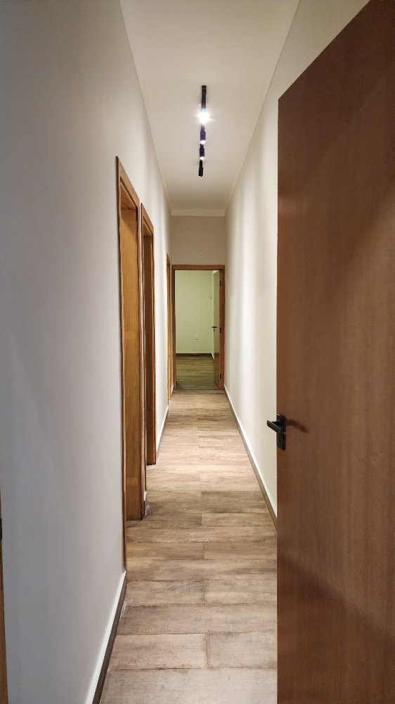 Porcelanato amadeirado corredor e quartos