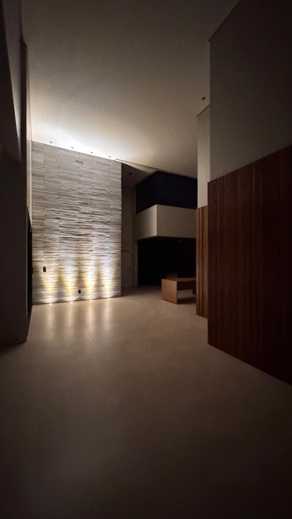 Iluminação cênica em toda a casa, valorizando a arquitetura