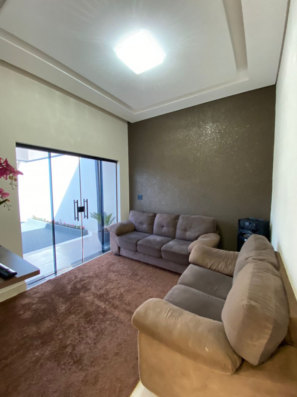 Construção nova, com pé direito alto, que valoriza a amplitude e a iluminação natural dos ambientes.