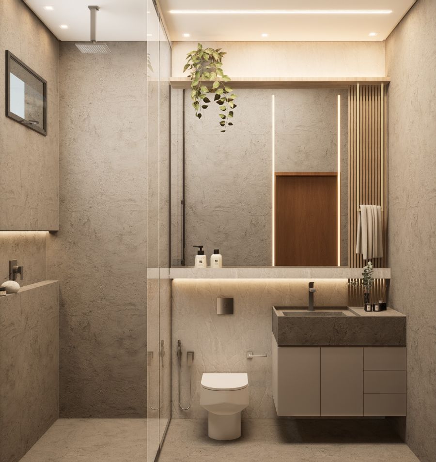Banheiros com armários e Box