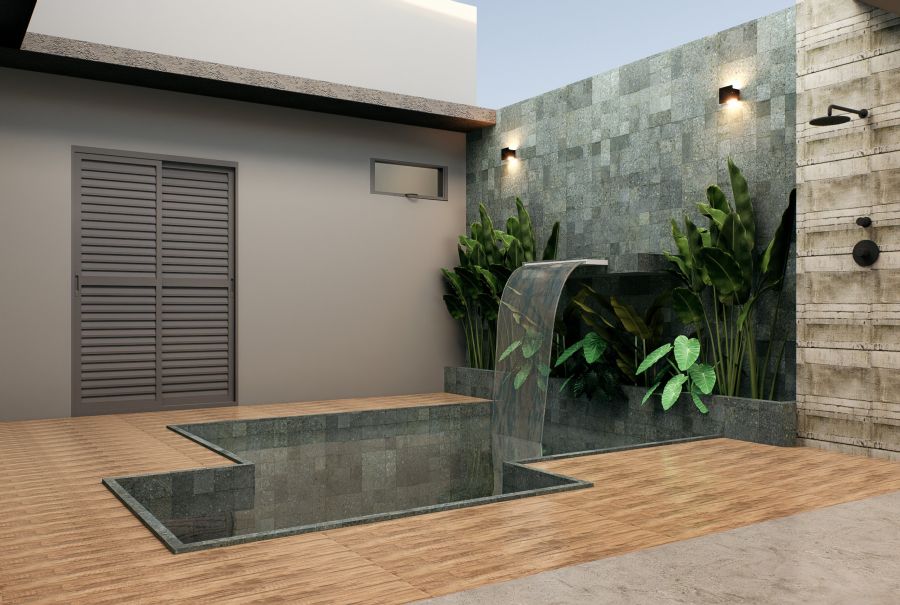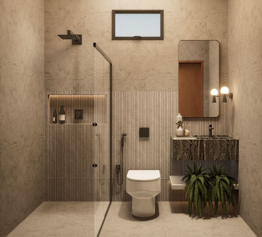 Banheiro externo com ducha quente