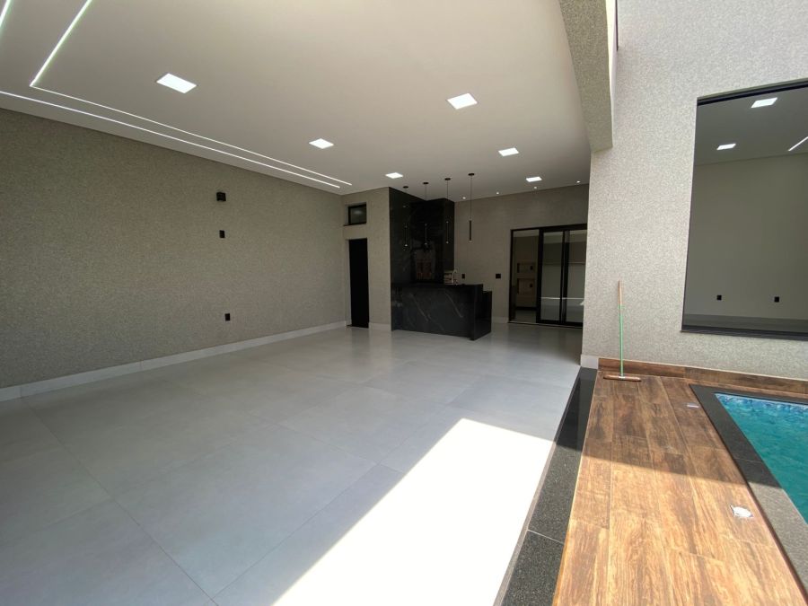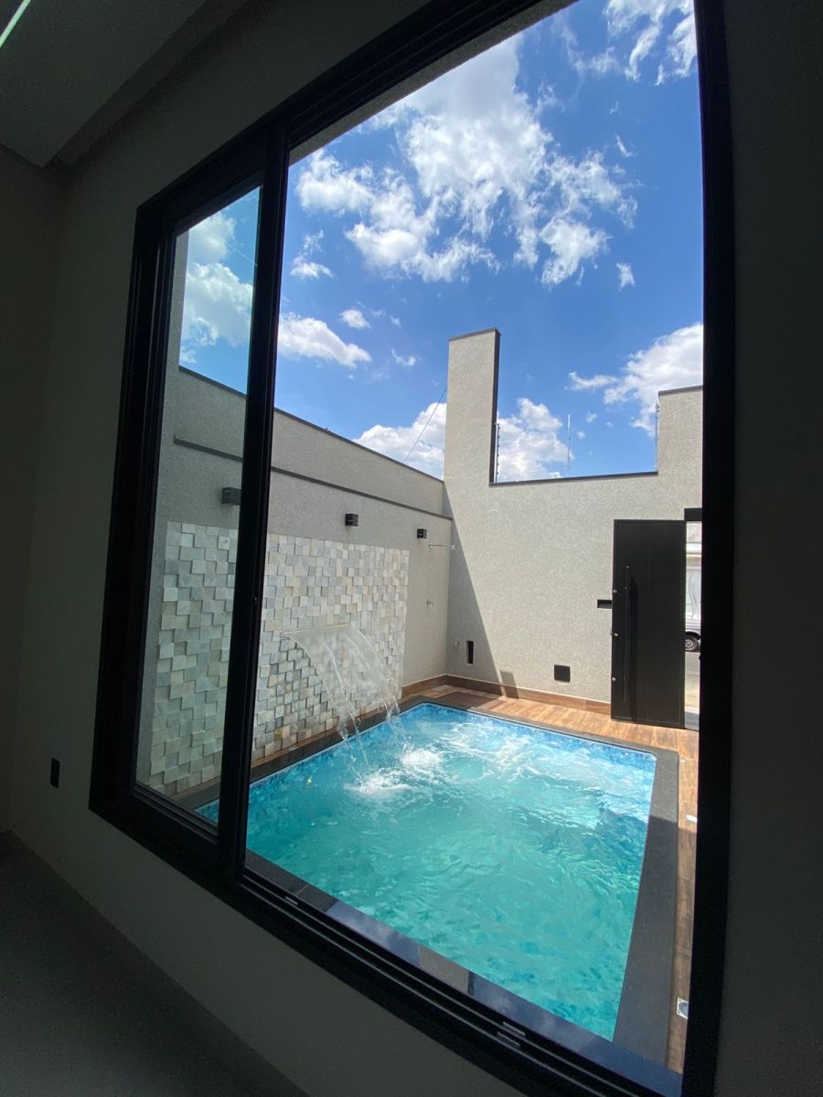 - Esquadrias em alumínio (janela da sala com vista ampla para a piscina)